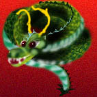 悪龍ニッグフード世界樹の根に閉じこめられ、世界を呪っている。 世界樹の根を噛み砕いて、森と地球を 滅亡させようとして いる、悪しき想念 の形。 |